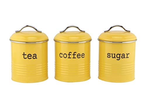 Set di 5 barattoli con scritte in inglese Tea, Sugar, Coffee, Biscuit, Bread.