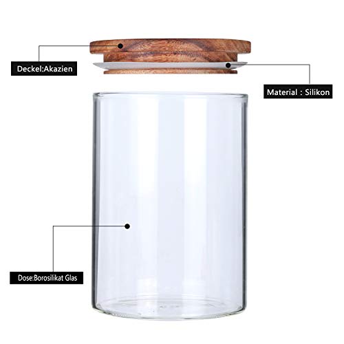✅ Materiale: Barattoli di Vetro Borosilicato,design elegante e vetro molto resistente,Coperchio Ermetico di Legno.