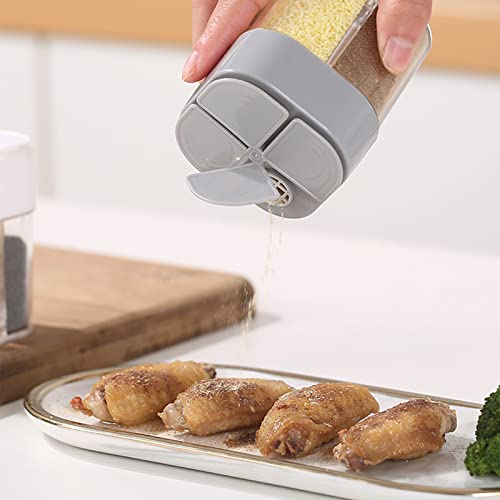 4 in 1 Barattoli per Spezie, 2 Pezzi Plastica Grigia Vasi Condimenti, Dispenser per Spezie Quadrato, per Barbecue di Cucina del Ristorante Domestico