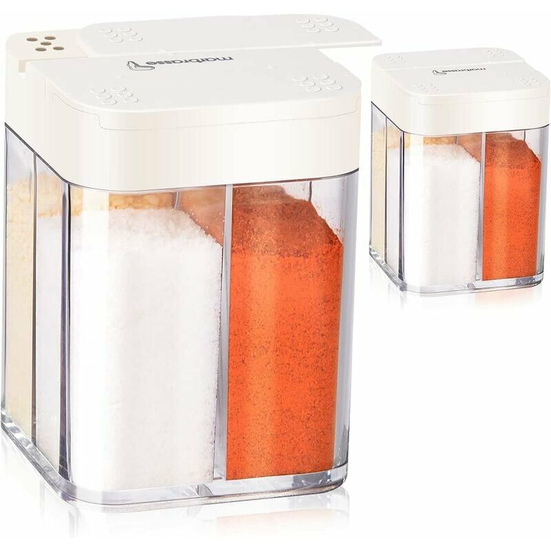 Quattro barattoli di spezie in uno?: I nostri barattoli per spezie contengono 4 piccole scatole trasparenti, quattro spezie e polveri possono essere conservate contemporaneamente: sale, amido di mais, spezie, pepe, zucchero, zenzero, cannella, ecc., Molto comodo e facile da conservare. utilizzare. ?Quattro diverse aperture?: Il portaspezie è dotato di quattro diverse aperture rotonde. I piccoli fori rotondi servono per conservare varie polveri di spezie: sale, amido di mais, pepe, ecc. Il grande foro rotondo è adatto per conservare grandi particelle di spezie. ?Scatola delle spezie trasparente?: nella scatola delle spezie trasparente, puoi facilmente vedere quante spezie ci sono e il dosaggio è chiaro a colpo d'occhio, puoi sempre aggiungere sale, pepe, ecc. spezie fresche . < / li> ?Barattoli per spezie con coperchio?: Ogni barattolo per spezie è dotato di un coperchio per essere chiuso ermeticamente e per evitare che le spezie entrino in polvere o altri oggetti sporchi.