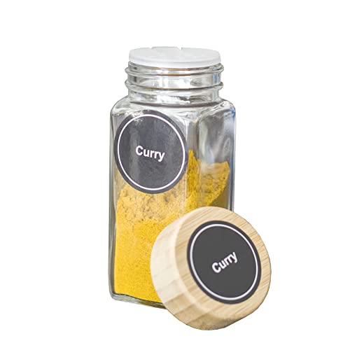 Materiali di alta qualità: vasetti vetro piccoli quadrati di alta qualità. I coperchi sono in bambù naturale. Dimensioni di ogni vasetto di spezie: 4 cm di larghezza e 11,5 cm di altezza. Diametro del coperchio: 4,5 cm. Capacità: 125 ml.