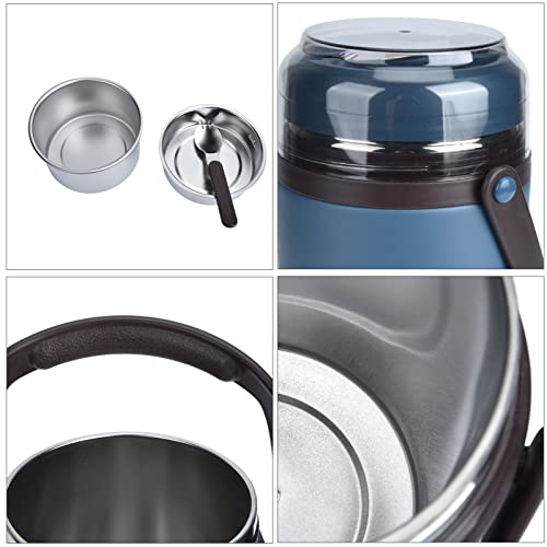 Barattolo per Alimenti Isolato, Thermos per Zuppa di Cibo Caldo a Bocca Larga da 2l a 2 Piani con Manico Contenitore per il Pranzo a Tenuta Stagna in Acciaio Inossidabile 304 con(Blu stellato)