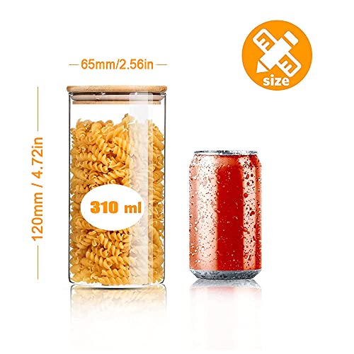 Barattolo Cucina Contenitori, 5Pcs Barattoli di Spezie, Barattoli in Vetro, Contenitore Ermetico, Contenitori per Alimenti, per Cereali, Spezie, Farina, Zucchero, Tè, Chicchi di Caffè (310ML)