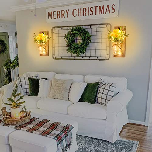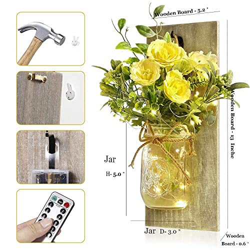 Luce del barattolo di muratore, (2 pezzi) Applique da parete in legno rustico, Pianta finta, Luci a strisce LED Design per la decorazione domestica (Testa di fiore giallo)