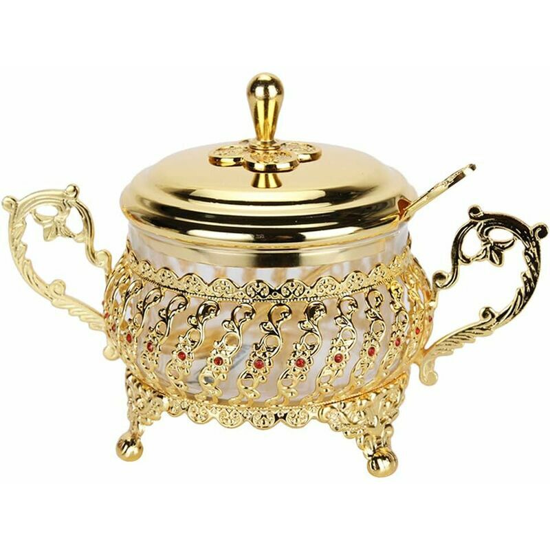 spazio prezioso. Questo eccezionale set è un ottimo regalo per l' inaugurazione della casa, matrimoni e anche per il compleanno di tua madre. Descrizione Questo articolo è un barattolo per spezie in vetro e lega di alta qualità. Con un design accattivante e creativo, è allo stesso tempo elegante, resistente e facile da pulire. Perfetto per l'uso quotidiano e per le occasioni speciali. E adatto per servire spezie come zucchero o tè e altri. Caratteristica. - Colore: come mostrato nell' immagine. - Materiale: vetro e lega. - Dimensioni: ca. 13,5 x 8 x 5 cm. - Un set contiene un bicchiere con coperchio e un cucchiaio. - Il barattolo di condimento dal design unico rende divertente il tuo tempo di