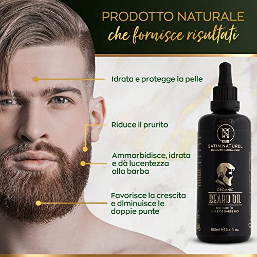 L'Olio da Barba BIOLOGICO Vegano - 2 VOLTE PIÙ GRANDE (100ml) in Vetro - Nutriente per la Barba - Solo Oli Naturali, Senza Additivi - Idea Regalo per Uomo - Made in Germany