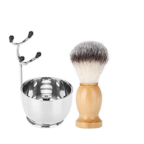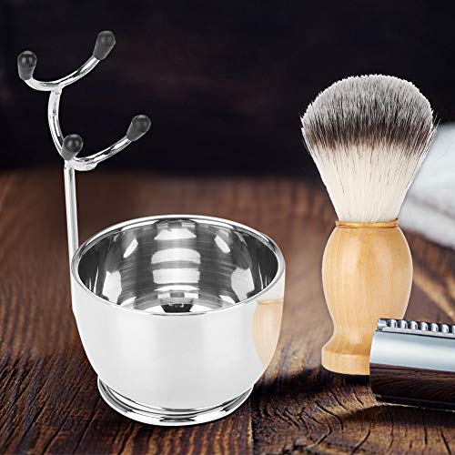 Set da barba per barba da uomo, ciotola per sapone in acciaio inox + supporto per telaio da barba + spazzola per capelli rasatura per baffi kit per rasatura barba