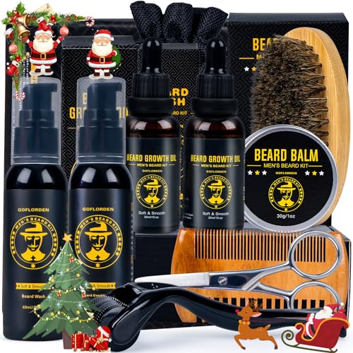 Kit per barba, kit per la cura della barba per uomo, kit per la crescita della barba con rullo per barba, 2 confezioni di olio per la crescita della barba, shampoo per barba, balsamo per barba