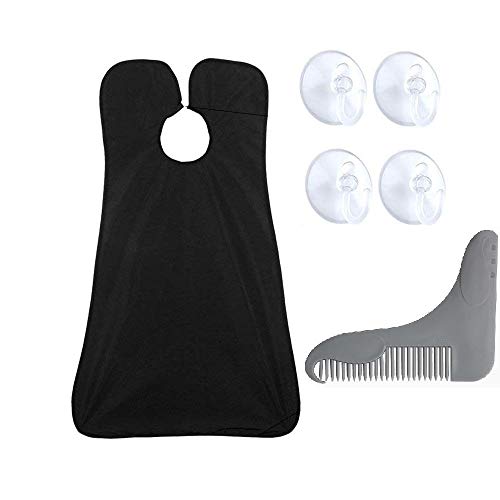 Barba Grembiule, JT Impermeabile Cattura Barba e Capelli Grembiule con Pettine Barba + 4 Ventose per Specchio - regalo perfetto degli uomini di rasatura capelli e baffi nel bagno (Kit Nero)