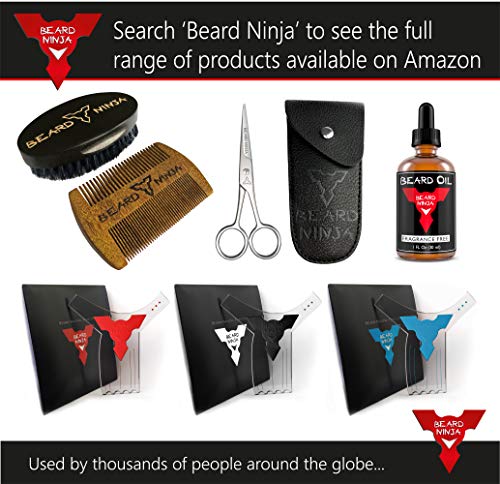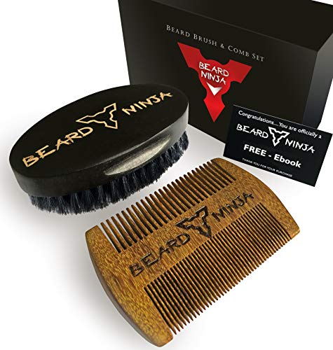 Barba Ninja - Spazzola e pettine per barba per uomini - 100% legno spazzola con setole di cinghiale e fatto a mano Legno di sandalo pettine kit - Luxury Gift for Grooming styling & modellante barba e baffi