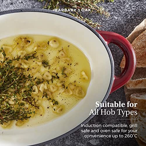 Barbary & Oak BO800252RED - Casseruola ovale in ghisa con interno smaltato resistente, 29 cm, colore: Rosso bordeaux