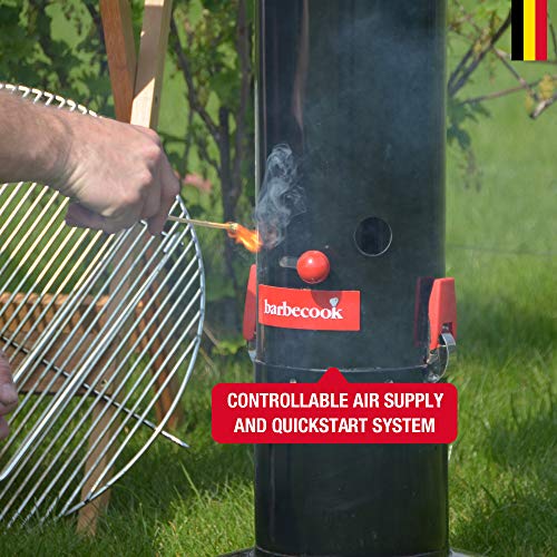 Barbecook Loewy 50 Barbecue a carbone con protezione antivento, barbecue rotondo con QuickStart e QuickStop, regolabile in 3 posizioni, nero, griglia di Ø 47,5 cm