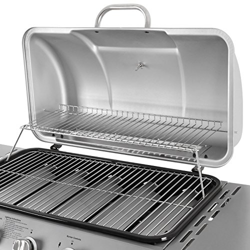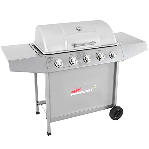 Barbecue a Gas con 5 Bruciatori - Area Grill 56 x 21 cm, con Termometro, Colore: Argento - Barbecue, Picnic e Terrazzo, BBQ Gas