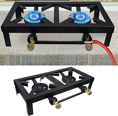 Barbecue a gas Fornello da campo portatile a doppio bruciatore, fornello for barbecue a gas propano in ferro GPL for campeggio all'aperto e zaino in spalla