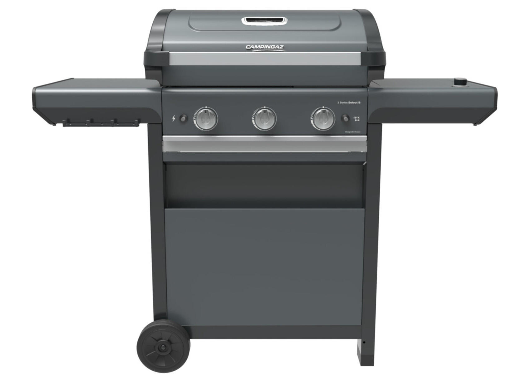 Il barbecue 3 Series Select S è il compagno perfetto per tutti gli amanti della griglia. È dotato di potenti bruciatori Blue Flame e di un'ampia superficie di cottura in ghisa smaltata. Il sistema Culinary Modular è incluso e garantisce una maggiore versatilità di cottura. La pulizia è veloce e senza sforzo grazie al nuovo sistema Campingaz InstaClean Aqua. Fornello laterale integrato e ripiano laterale pieghevole grazie al sistema Campingaz Push2Fold.. Bruciatori Blue Flame. Sistema Push2Fold. InstaClean Aqua