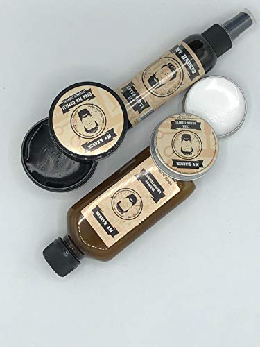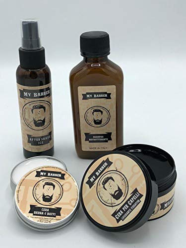 Kit my barber cera per capelli 100 ml, cera barba e baffi 50 ml, after shave dopobarba 100 ml, shampoo ristrutturante 200 ml