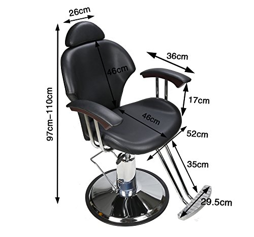 BarberPub Poltrona da barbiere classica Poltrona reclinabile idraulica 360 gradi girevole regolabile per capelli Salone di bellezza 8714BK