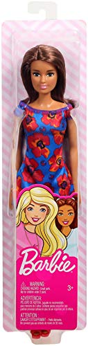 Barbie - Bambola alla moda con capelli castani e vestito blu con fiori (Mattel GBK94), colore/modello assortito