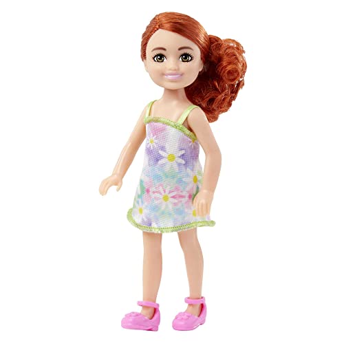 Barbie - Mini Bambola Chelsea, Alta 15 cm, Capelli Rossi e Occhi Azzurri, con Abito Rimovibile dal Motivo Floreale e Scarpe Rosa, Giocattolo per Bambini, 3+ Anni, HNY56
