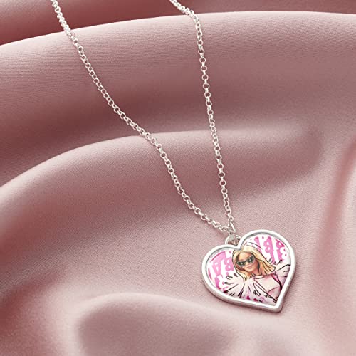 Questa splendida collana presenta la tua bambola Barbie preferita all'interno di un ciondolo a forma di cuore in argento, su una catena di 40 cm.