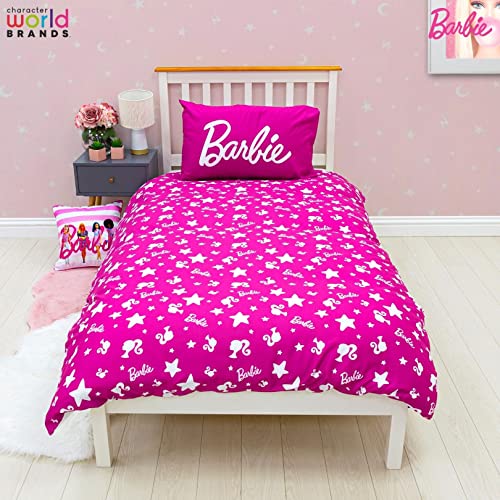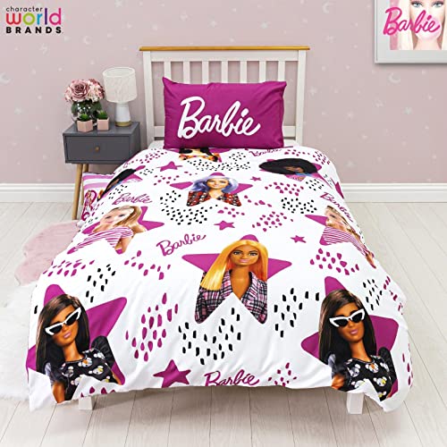 Barbie Set copripiumino per letto singolo ufficiale per bambini, design a stelle reversibile su 2 lati, con federa coordinata, set da letto singolo Character World Brands