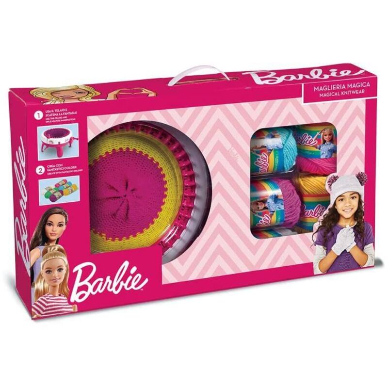Maglieria magica di Barbie per realizzare morbidi e caldi accessori Inclusi nella confezione gomitoli di tanti colori diversi Adatta ai bambini dai 3 anni in su