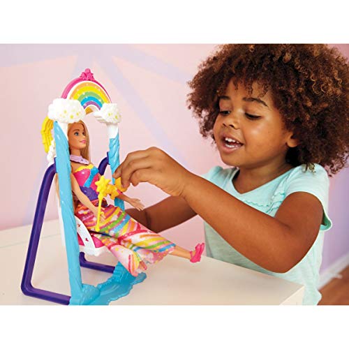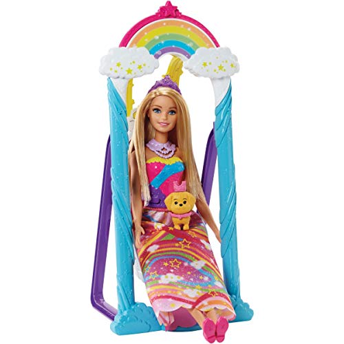 Barbie Princess Swing Dreamtopia Altalena Arcobaleno, con Principessa, Multicolore, Fjd06