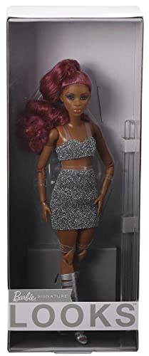 La bambola Barbie Looks ha lineamenti del viso unici e capelli ricci rosso brillante con riflessi magenta.