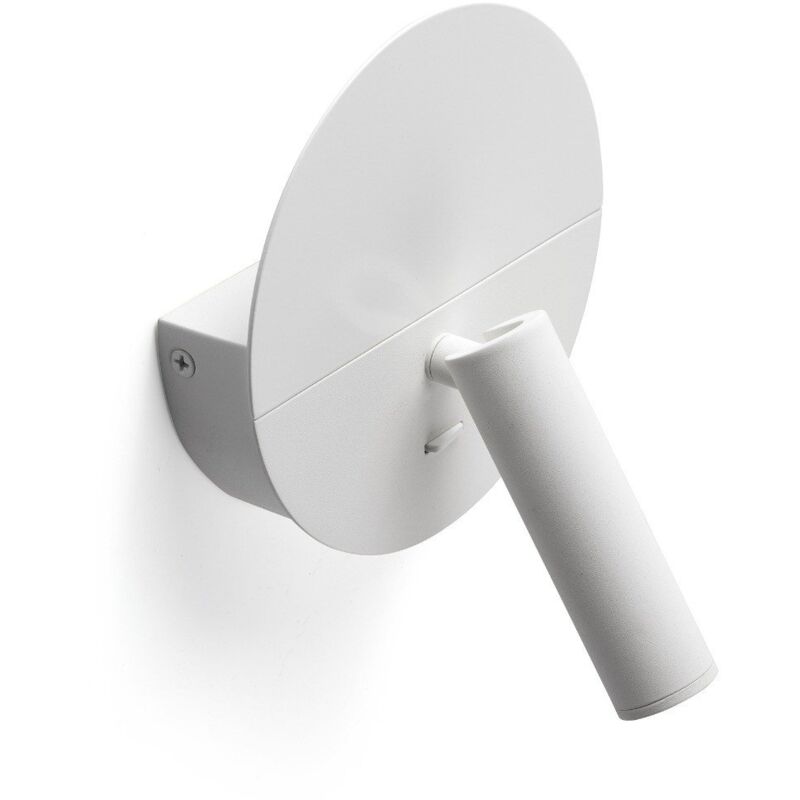 Aplique lector LED blanco, modelo DUAS. Su forma circular se divide para dejar a la vista dos acabados, con el superior más opaco. Cuenta con una entrada USB ideal para cargar el movil y con una pequeña bandeja en la parte posterior para dejar el dispositivo durante la carga. Es perfecto para la iluminación de habitaciones. Incluye la fuente de luz integrada es COB LED de 3W y una temperatura de color cálida de 2700K.