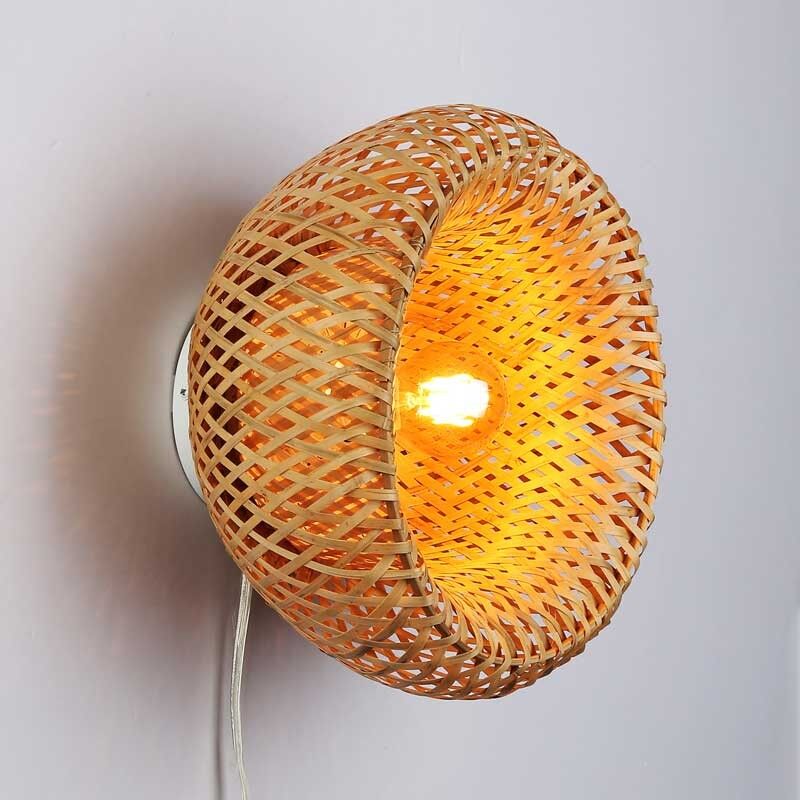 Lampada da parete in vimini con portalampada E27, perfetta per ambienti moderni e caldi. Round è stata progettata con una forma rotonda e organica. La sua presenza offre una compagnia elegante e raffinata. Grazie alla sua struttura e composizione emette una piacevole luce d'ambiente, perfetta per il montaggio a parete in soggiorno, sala da pranzo, camera da letto, scrivania, ambienti caldi ecc. Il cavo ha una lunghezza di 170 cm e contiene un interruttore per un utilizzo pratico e veloce (solo per uso interno). **Lampadina LED E27 NON inclusa**.