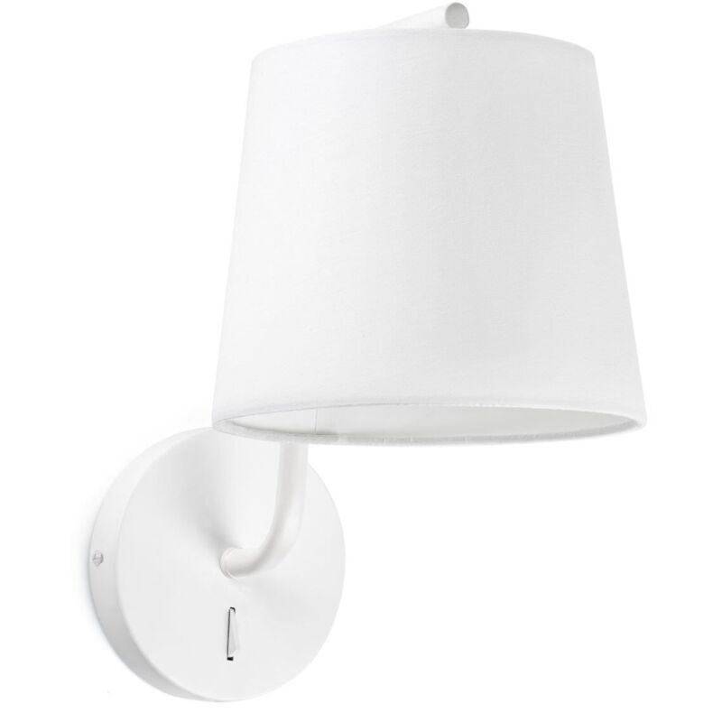 Aplique blanco mate, modelo BERNI de FARO. Este aplique es compatible con una fuente de luz E27 no incluida. Fabricado en acero y acabado en blanco mate. Dispone de una protección IP20