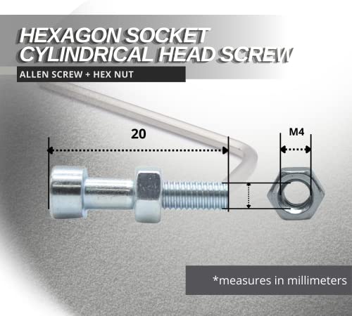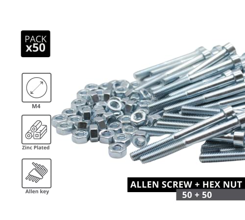 DOJA Barcelona | Viti con Dado | 50 Viti a Brugola DIN 912 M4x20 con 50 Dadi Esagonali DIN 934 M4 | Acciaio Zincato | Set Dadi Esagonali e Set Viti a Brugola per macchinari, assemblaggio di lamiere