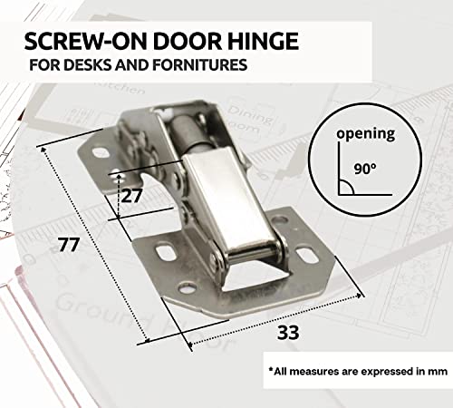 ◼️ Il nostro pacchetto di cerniere antine cucina contiene 12 pezzi. Cerniere a chiusura lenta con angolo di apertura: 90° gradi, lunghezza 77 mm, larghezza 33 mm. Design silenzioso. Non fa rumore quando si apre o si chiude la porta. Il design a chiusura morbida impedisce alle dita di chiudersi nell'armadio. Le cerniere cucina vanno avvitate, ma non è necessario praticare fori per posizionare la cerniera.
