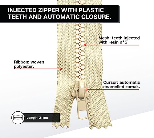 DOJA Barcelona | Cerniere Lampo | 10M Cerniera Lampo 5 Beige | Cerniera per Vestiti, Borse, Cuscino | Cerniere a Metro Colorate Plastica | Cerniera a Metro da Cucire | Cerniere Lampo per Giubbotti