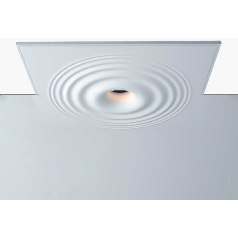 Faretto da incasso in gesso in forma di onde che svaniscono progressivamente. Da installare in tetti di cartongesso. Questo apparecchio è stato progettato per ottenere una perfetta integrazione nell'ambiente, poiché dopo una semplice installazione si ottiene una continuità visiva senza spigoli o fessure percettibili. L'intonaco, noto anche come gesso, oltre a essere integrato nel cartongesso, può essere dipinto nel colore desiderato, rafforzando così il concetto di integrazione. Può essere dotata di una lampadina GU10, offrendo molteplici possibilità funzionali ed estetiche nei progetti architettonici, a seconda del tipo di lampadina scelta. **Lampadina GU10 non inclusa**.