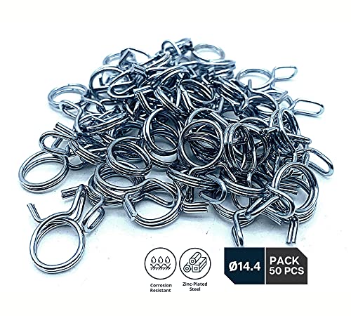 DOJA Barcelona | Fascette Stringitubo a Molla per Tubo| 14mm | Pack 50 | Morsetti per Tubi Acciaio Zincato | Fascetta Senza Viti | Fascette Metalliche Regolabili | Morsetto Fissaggio Tubi