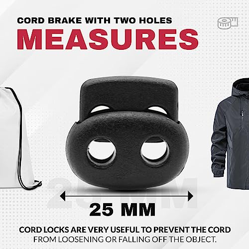 DOJA Barcelona | Fermacorda a Molla | Nero | 50 Pezzi | 25mm | Ferma Corda a Molla Plastica | Ferma Cordino a Molla | Fermacorda Doppio Foro | Fermacorda per Cordoncino Elastico Borse, Zaino