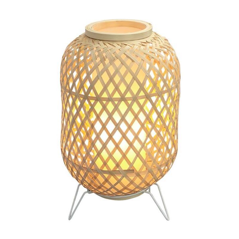 Lampada da tavolo realizzata artigianalmente in fibre di vimini. La sua originale trama genera un suggestivo gioco di luci e ombre quando interagisce con l'illuminazione, creando atmosfere calde e accoglienti. Ideale come lampada da tavolo in salotto o in camera da letto, il suo design versatile si adatta facilmente a diverse aree della casa. ** Lampadina E27 - non inclusa**