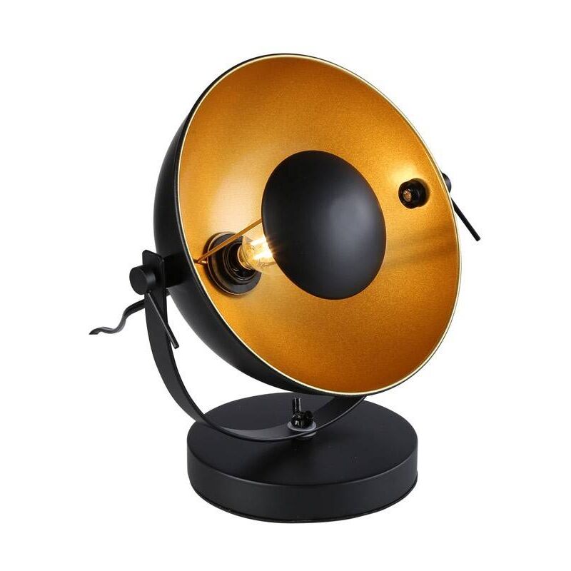 Lampada da tavolo dal design vintage, ispirato alle vecchie lampade da studio fotografico. Il suo paralume concavo è completamente orientabile e la sua superficie riflettente color oro fornisce una luce straordinariamente uniforme. Aggiungi stile e personalità ai tuoi ambienti con questa elegante lampada da tavolo vintage. **Lampadina E14 - non inclusa**