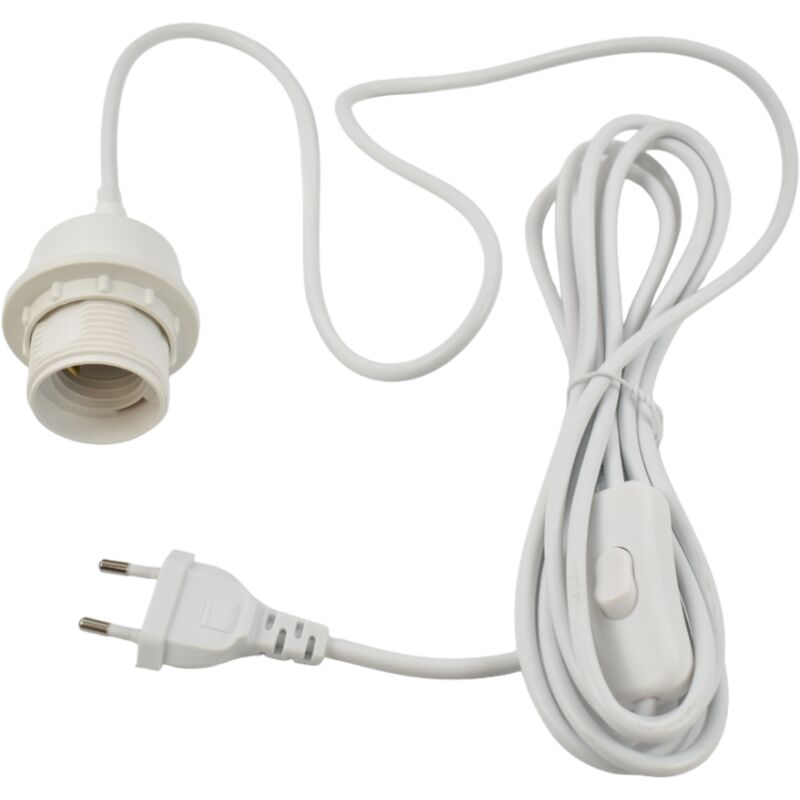 Portalampada E27 con cavo in PVC, interruttore e spina per lampade a sospensione. Versatile e facilmente adattabile a diversi stili decorativi, perfetto per personalizzare qualsiasi spazio scegliendo la tonalità desiderata. Il cavo è lungo 3,38 m ed è regolabile tramite due clip di fissaggio a parete che consentono un'installazione e una regolazione personalizzate. Alla sua estremità è incorporato un interruttore e una spina Schuko standard. La presa è compatibile con qualsiasi lampadina E27 con un massimo di 60W. ** Disponibile in bianco e nero - Include 2 clip di fissaggio con viti**.