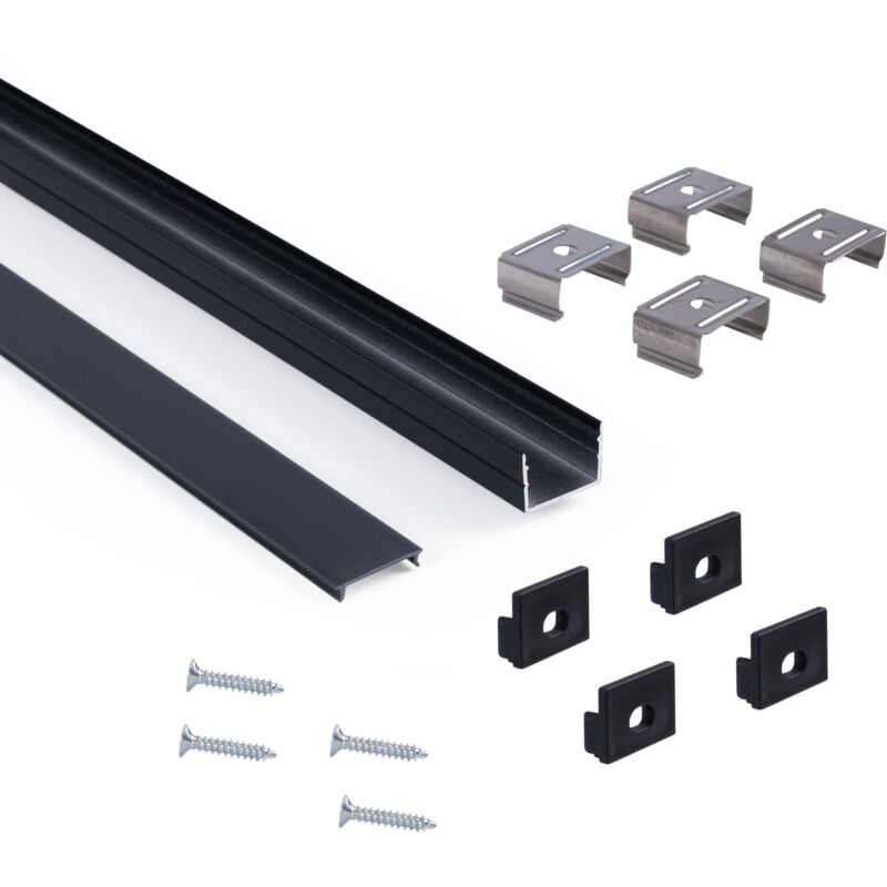 Profilo da superficie in alluminio, moderno e funzionale per varie applicazioni in cui la striscia LED deve essere nascosta. Fornisce un'illuminazione omogenea e priva di abbagliamento ed è adatto a strisce LED ≤15 mm. Disponibile nelle seguenti opzioni di colore: argento con diffusore bianco, bianco con diffusore bianco e nero con diffusore nero. ** Include diffusore, 4 tappi (con foro) e 4 clip di fissaggio**