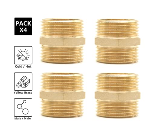 DOJA Barcelona | Raccordi Ottone | Maschio | 3/4" | 4 pz | Riduttore Filettato | Raccordi Idraulici Ottone per Aria, Acqua, Gas, Combustibile, Olio | Nipplo Ottone Rubinetto per Circolazione Tubo