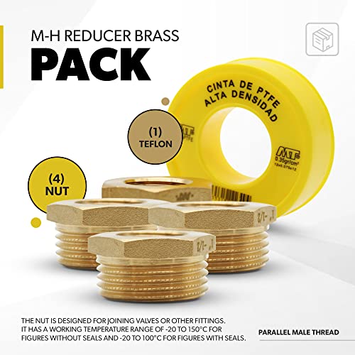 DOJA Barcelona | Riduttore Ottone + Teflon | 1/2" x 3/8" | 4 pz | Riduttore Rubinetto | Riduttore Idraulico Acqua, Gas, Combustibile, Olio | Riduttore Idrico per Garantire Corretta Circolazione Tubi