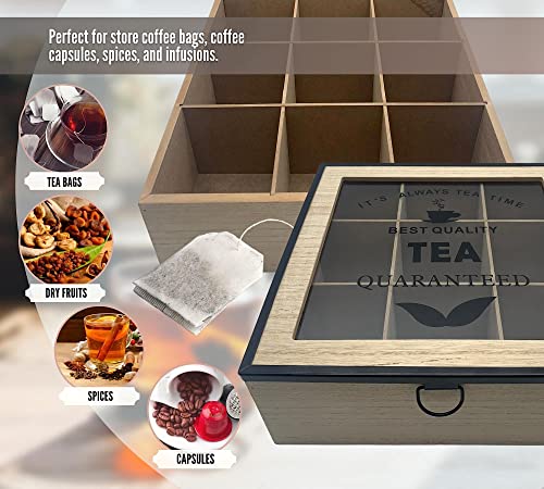 DOJA Barcelona | Scatola per Te e Tisane | 9 Scomparti | Porta Bustine The con Coperchio Trasparente | Box Cofanetto Tisane con Divisori per Tea, Tisana, Capsule Caffe, Spezie, Bustine di Zucchero