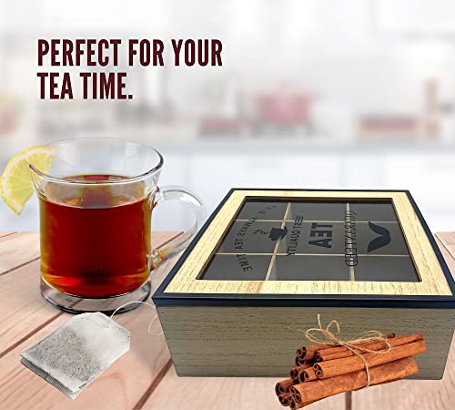 Le scatole per te con coperchio ermetico presentano una dimensione di 24 x 24 x 9. Le scatole con finestra trasparente forniscono resistenza e durata nel tempo. Le infusioni all'interno non perderanno il loro gusto e rimarranno intatte per molto tempo. Questa scatola per tè e infusioni realizzata in legno dispone di 9 diversi scomparti in modo da poter riporre in modo ordinato e organizzato le tue infusioni.