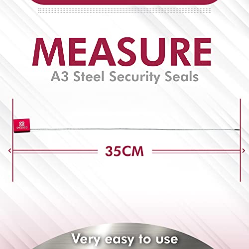 DOJA Barcelona | Sigilli di Sicurezza in Acciaio A3 | PACK 100 | 35 cm di Lunghezza | Colore Rosso | Sigillo Di Garanzia Metallico Numerati per Logistica, Container, Camion, tra gli altri usi.