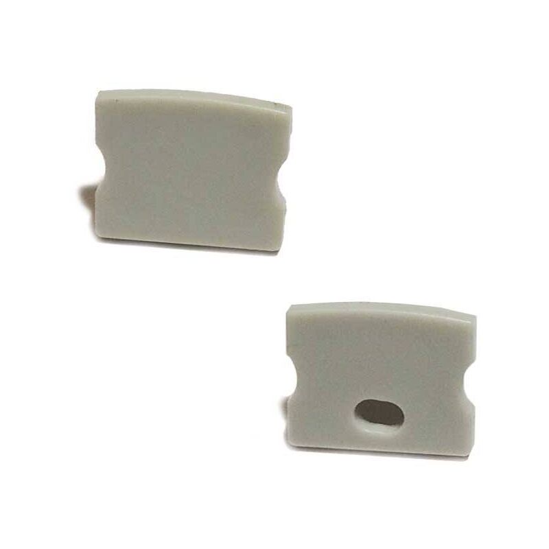 Coperchi laterali per profilo superficiale estruso in alluminio 17x15mm È possibile scegliere tra: - COPERTURA CON FORO: viene installata all'inizio del profilo. È dotato di un foro attraverso il quale far passare il cablaggio di installazione. - COPERTURA SENZA FORO: viene posizionata all'estremità del profilo al termine dell'installazione. In questo modo tutto è chiuso e la striscia è protetta. Per una corretta installazione del profilo è necessario acquistarne uno ciascuno.