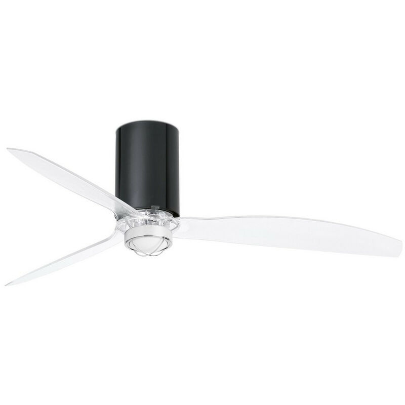 Faro MINI TUBE - Ventilatore da soffitto a LED nero lucido, trasparente con motore intelligente CC - Telecomando incluso, 3000K | Materiale: diffusore in vetro | Materiale: diffusore in vetro, acciaio | Altezza (cm): 32,4 | Diametro (cm): 128 | Tipo di lampada: LED INTEGRATO | Peso (kg): 5.3 | Lampadina inclusa: No | Potenza (max): 17W | Kelvin: 3000K | Lumen: 600lm