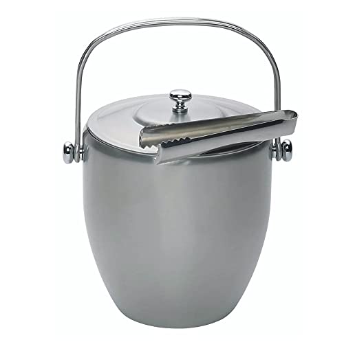 BarCraft Secchiello per il Ghiaccio con Pinze e Coperchio, Confezione Regalo Inclusa, Acciaio Inossidabile, 14.5 x 17 x 17.5 cm, Capacità 1.9 L