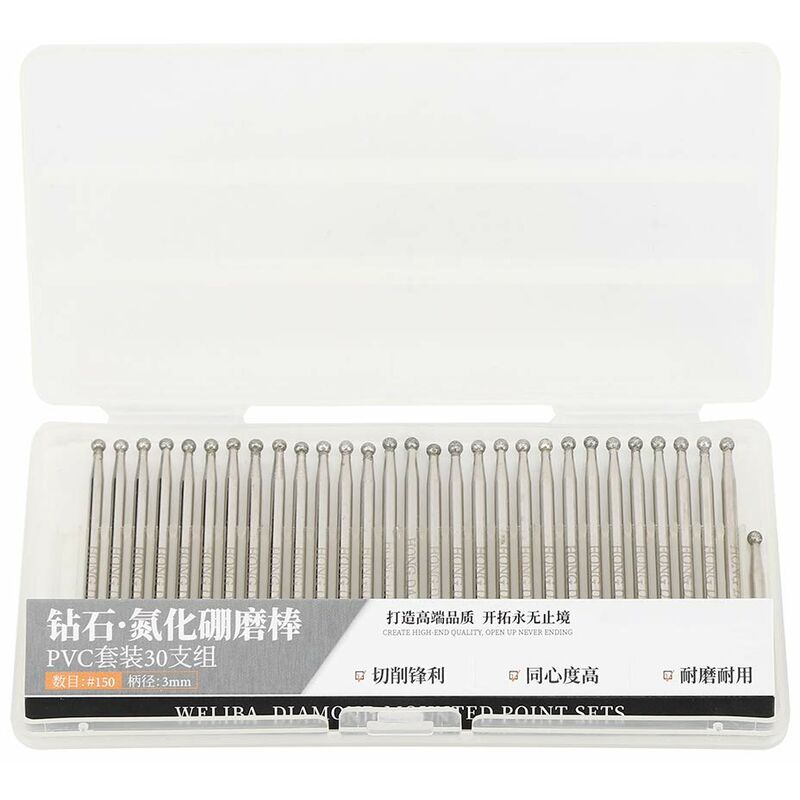 Grit 150 - 150 punte arrotondate a forma di sfera per una foratura fine con la potenza di taglio del diamante. 【Trattamento al nichel nero Il trattamento al nichel nero, aumenta notevolmente la durezza, migliora l'efficienza di rettifica. < p>【Informazioni sulle dimensioni】 Diametro gambo 3 mm/0,12 pollici, diametro testa sferica 3 mm/0,12 pollici e lunghezza 45 mm/ 1,77 pollici. 【Manubrio per fresatura CNC】Manubrio per fresatura CNC senza saltare, garantisce stabilità di rettifica . 【Resistenza e resistenza alla temperatura】 Resistenza ad alta resistenza e alle alte temperature, durevole e non lascia cadere la sabbia.